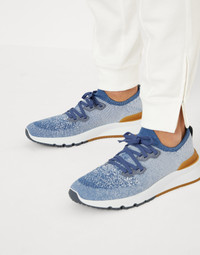 The classic yarns of Brunello Cucinelli knitwear inspire the elegant, sporty feel of these sneakers. The upper is made of a very lightweight, stretch chiné knit, which showcases a compact appearance on the sides with "micro-perforations" on the toe, a detail characteristic of sporty accessories. The elasticity of the knit guarantees an optimal fit and comfort. MATERIALS The cotton knit combines natural and synthetic fibers as well as a small percentage of spandex to provide optimal comfort. Its unlined construction and EVA bottom offer lightness. DETAILS Flat fabric laces Unlined Sole in lightweight micro rubber Detachable insole 89% COTTON, 10% NYLON, 1% ELASTANE