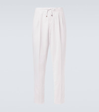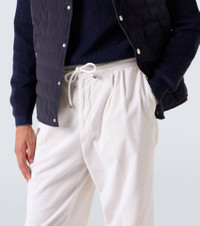The relaxed vibe of these drawstring pants is elevated by Brunello Cucinelli’s exceptional craftsmanship. Tailored pleats create a refined contrast against the corduroy fabric, making this piece a perfect blend of casual ease and sophisticated style. Product Details - Material: 100% cotton - Care instructions: machine wash at 30 degrees - Made in Italy - Designer color name: C6007 - Item color: white - Lining: 100% cotton - Lining II: 58% cotton, 42% polyester - Contains non-textile parts of animal origin - Closure: zipper, hook fastening - Elasticated drawstring waist - Pockets: side slit pockets, back pockets - Item number: P01056059 Size & Fit - True to size - Elasticated waist - Adjustable at the waist - Non-stretchy fabric - Straight leg - Height of model is 188cm-74" and wears a size 50