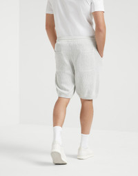 Traditional workmanship, sporty styling and modern comfort come together in these Bermuda shorts to enrich moments of relaxation and free time with the soft sensations of knitwear. The classic cashmere yarn provides the knit shorts with softness and lightness, while the English rib knit texture adds a traditional note. The comfortable drawstring waist and patch pockets complete the design. The silhouette offers straight, relaxed lines. MATERIALS The noble cashmere fiber is characterized by an extreme fineness and also for its precious insulating qualities which guarantee warmth, providing coverage and lightness when worn. DETAILS Pull-up trousers with drawstring Front pockets Back patch pockets English rib 100% COTTON