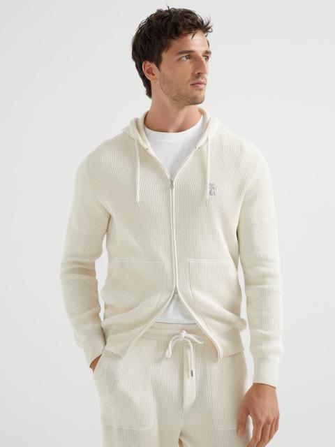 Cotton English rib knit hooded sweatshirt with logo and zipper