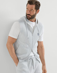 Cotton English rib knit hooded vest with logo and zipper
