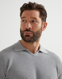 Refined details and natural yarns define the simple, elegant look of this cotton knit polo. The V-neck is enriched with a small collar reminiscent of classic styles, while the English rib knit texture enhances the season’s colors and gives a traditional allure to the sporty silhouette. The contrast color edges of the sleeves complete the design of the garment with a sophisticated touch. MATERIALS Manufacturing of the pure cotton yarn enhances the qualities of the natural fibers and makes the garment lightweight and comfortable to wear. DETAILS V-neck Small collar English rib 100% COTTON