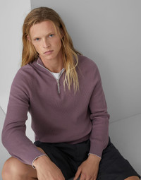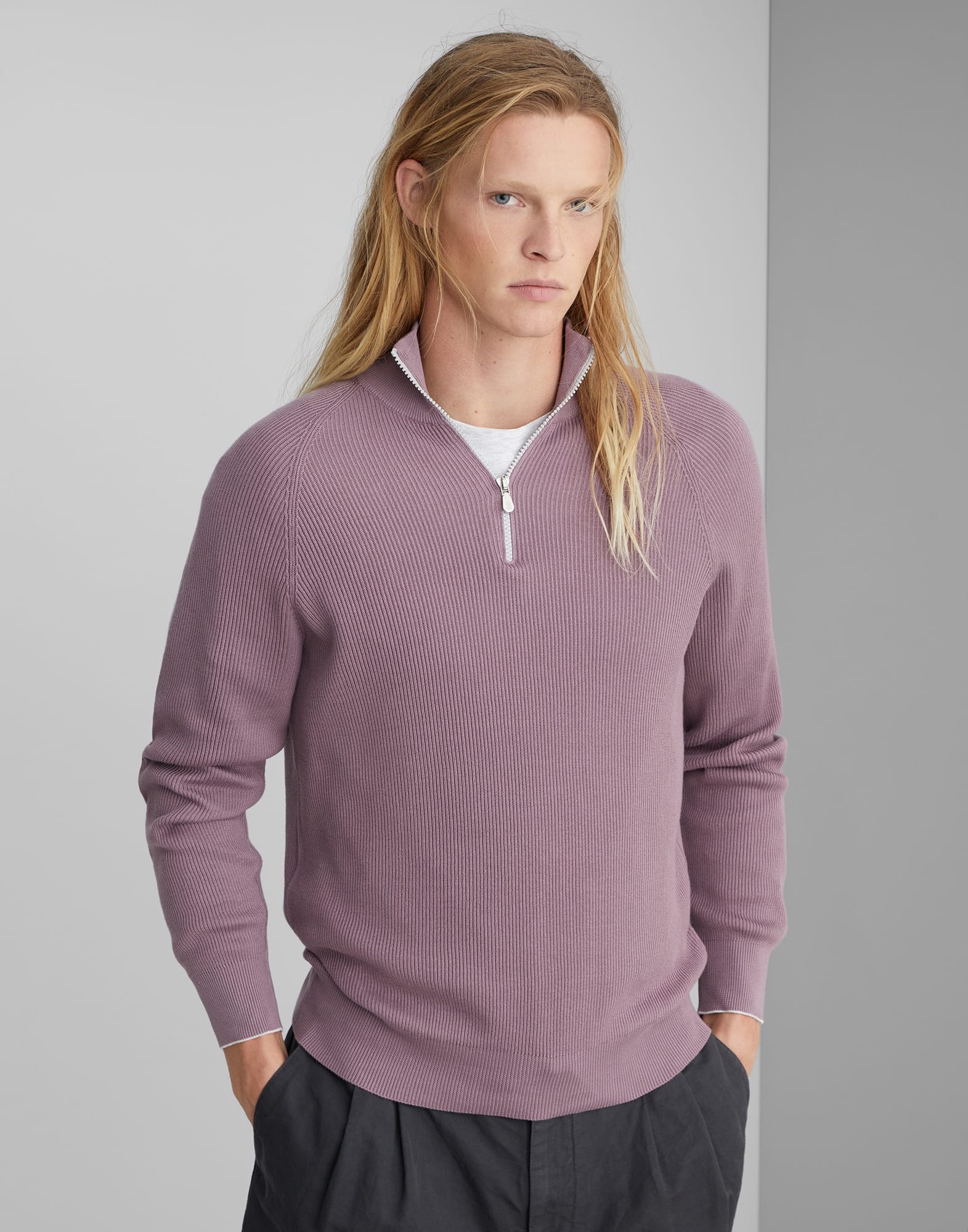Cotton English rib knit sweater with half zip and raglan sleeves