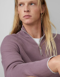 The classic, casual feel of English rib knitting is paired with the sporty details of the zipper closure and raglan sleeves in this pure cotton sweater. Lightweight and comfortable, the piece is ideal to wear in the summer. The silhouette features regular proportions. MATERIALS Manufacturing of the pure cotton yarn enhances the qualities of the natural fibers and makes the garment lightweight and comfortable to wear. DETAILS Zip opening Raglan sleeve English rib 100% COTTON