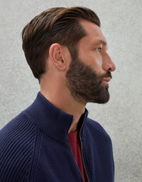 The Garza technique used to create the cotton yarn gives this half English rib knit cardigan a balanced weight, making it ideal for the beginning of the season. Raglan sleeves, a high neck and a two-way zipper closure add a sporty appearance to the garment. MATERIALS The pure cotton yarn is woven with the Garza technique, a process which leaves wide stitches to make the garment lightweight and comfortable. DETAILS Two-way zip closure High collar in rib knit Raglan sleeve Vertical hand pockets Half English rib 100% COTTON