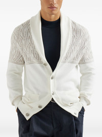 cotton jacquard cardigan Highlights - Panama - Cotton - Jacquard cable shoulder - Button fastening - Two front pockets Made in Italy Composition Cotton 100% Washing instructions Hand Wash