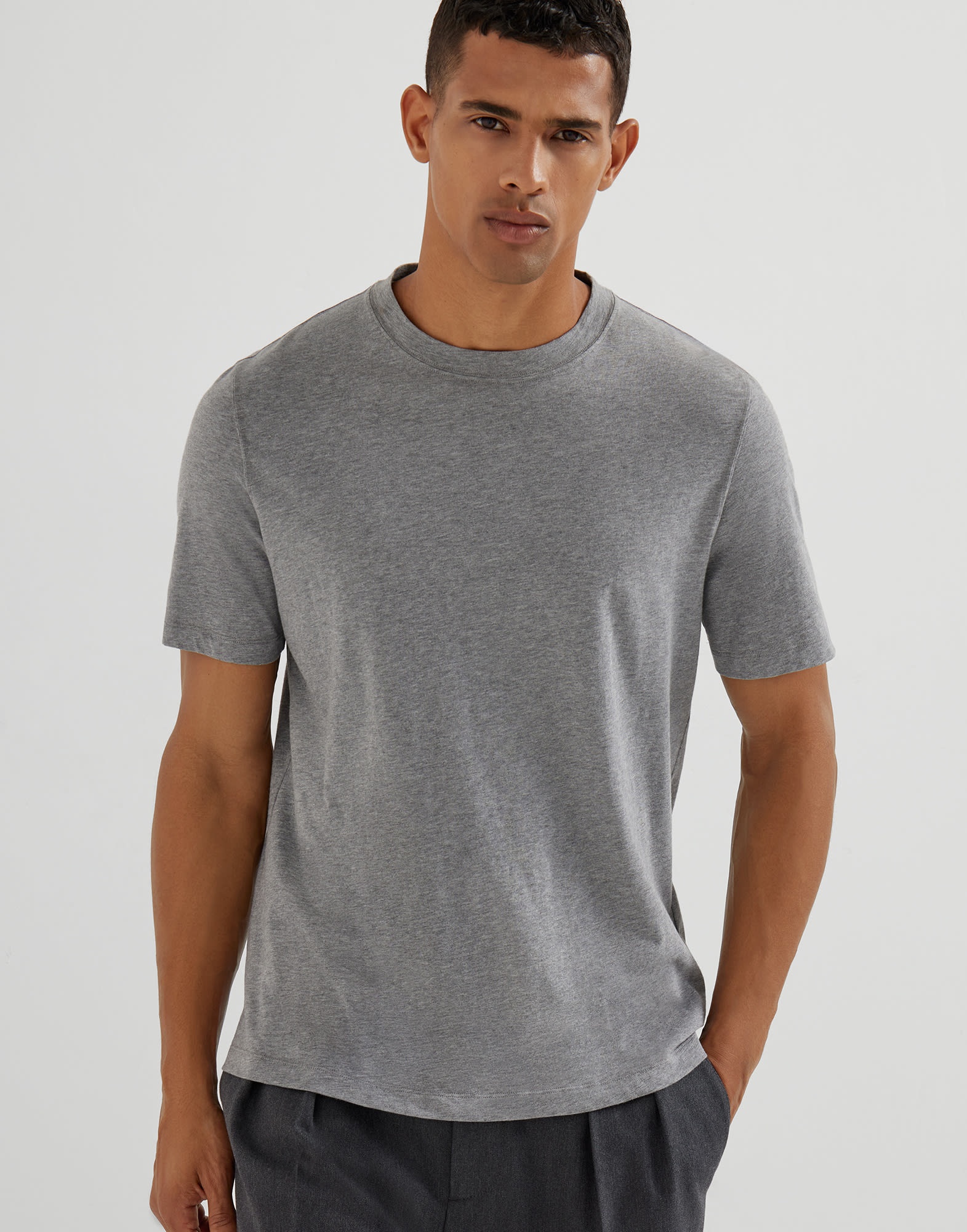 Lightweight and comfortable, pure cotton jersey enriches the essential lines of this crew-neck T-shirt, a must-have piece of the season's wardrobe to complete any look. The silhouette features regular proportions. MATERIALS Fine natural cotton fiber enriches the soft jersey, a lightweight fabric with a soft, fluid hand. DETAILS Crew-neck Regular fit 100% COTTON