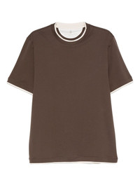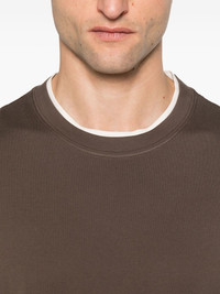 cotton T-shirt Highlights - Taupe brown - Round neck - Short sleeves - Two-tone design Made in Italy Composition Cotton 100% SIZE & FIT Model measurements Height 6 ft 2 in(1.87 m) Bust/Chest 37.79 in(96 cm) Hips 37.79 in(96 cm) Waist 30.31 in(77 cm) Washing instructions Machine Wash
