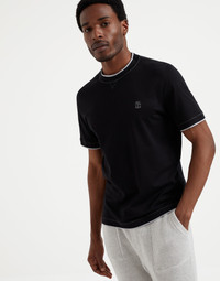 Refined details enhance this classic crew-neck T-shirt in soft cotton jersey from the Travelwear line, dedicated to moments of relaxation and free time. The contrasting inserts create a layered effect that highlights the edge of the crew-neck, sleeves and bottom, while the Solomeo crest on the chest references the origins and values of the brand. The silhouette features regular proportions. MATERIALS The exquisite quality of the natural cotton fibers enriches the soft jersey, a lightweight fabric with a smooth, fluid hand. DETAILS Crew-neck with triangle Sleeves with flat pressed hem Flat pressed hem 100% COTTON