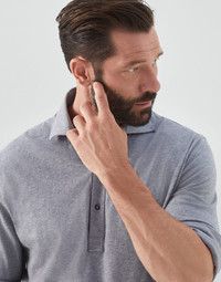 The excellence of Brunello Cucinelli materials enriches the timeless, casual style of this long sleeve polo shirt. The sophisticated detail of its shirt-style collar pairs perfectly with the soft, lightweight texture of cotton jersey, while the basic fit and regular lines makes this piece comfortable to wear. MATERIALS Fine natural cotton fiber enriches the soft jersey, a lightweight fabric with a soft, fluid hand. DETAILS Shirt-style collar with button opening Button cuffs Flat pressed hem Basic-fit 100% COTTON