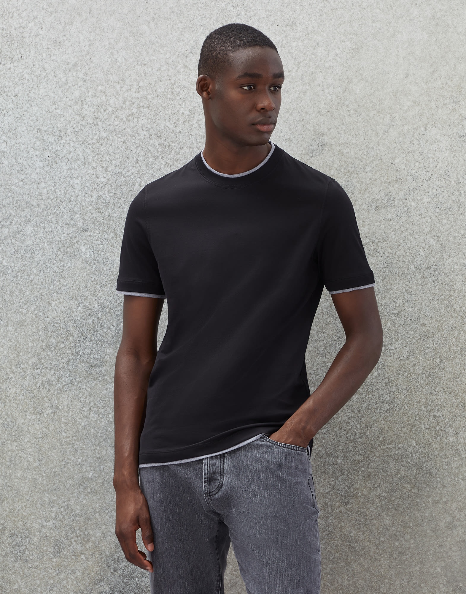 Cotton jersey round neck slim fit T-shirt with faux-layering