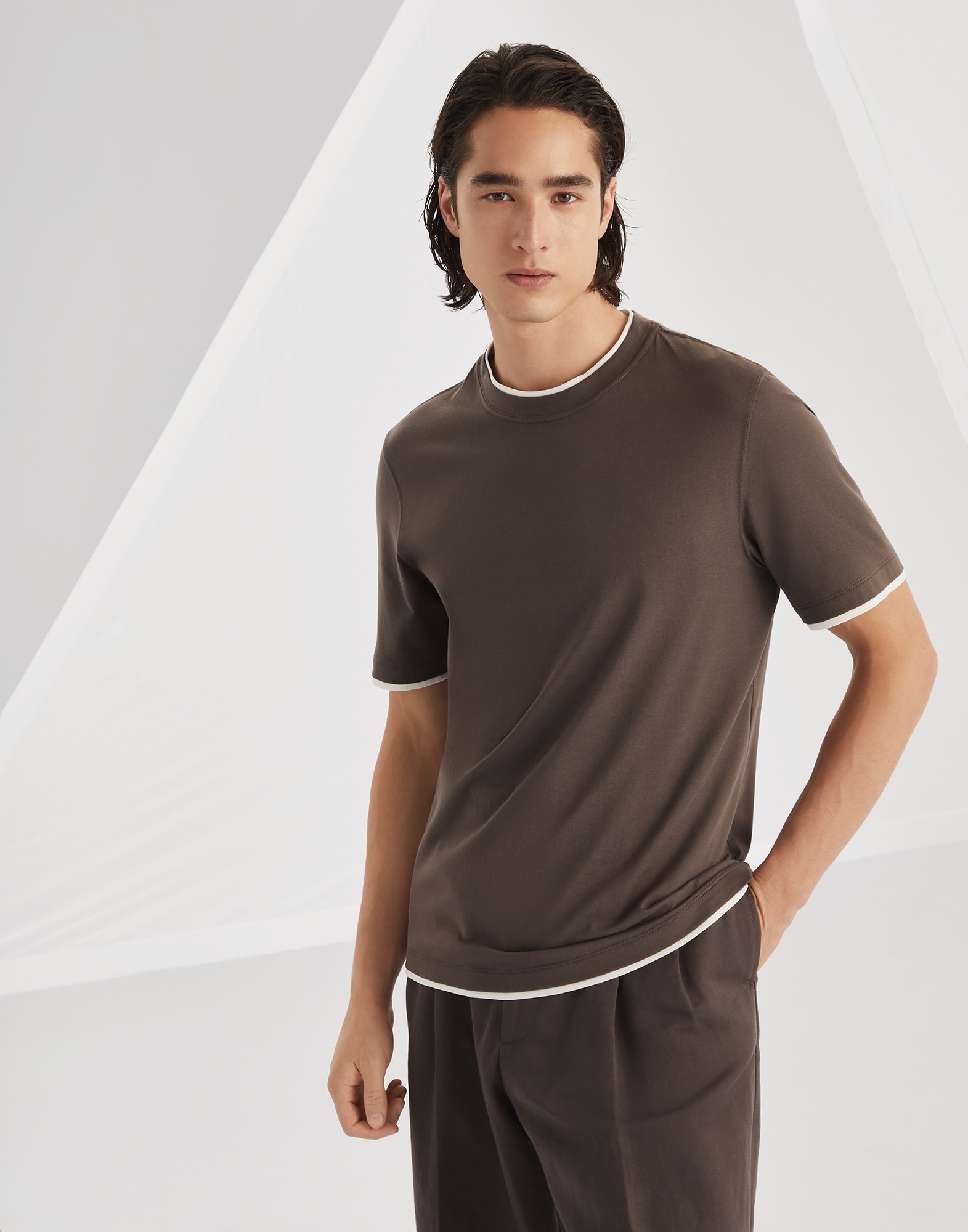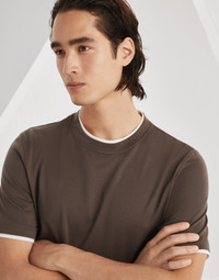 An elegant detail enhances this classic crew-neck T-shirt in soft cotton jersey. A contrast color insert creates a faux-layered effect that highlights the edges of the neckband, sleeves and bottom. The silhouette features regular proportions. MATERIALS Fine natural cotton fiber enriches the soft jersey, a lightweight fabric with a soft, fluid hand. DETAILS Crew-neck Sleeves with flat pressed hem Flat pressed hem Basic fit 100% COTTON