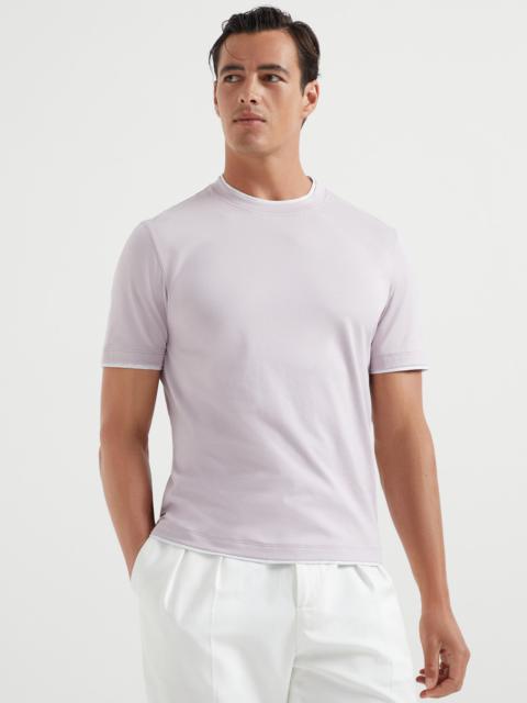 Cotton jersey crew neck T-shirt with faux-layering