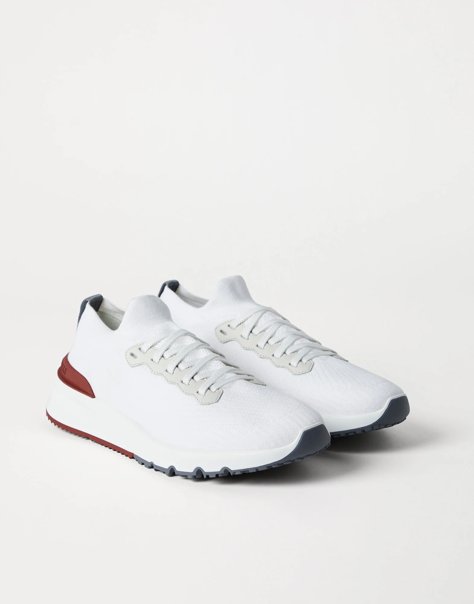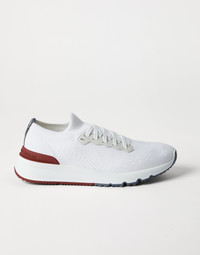 Inspired by the refined yarns of Brunello Cucinelli knitwear, these new cotton knit sneakers update the feel of classic styles in a contemporary way. The semi-polished calfskin trim stands out next to the fine, comfortable appearance of the cotton knit: this sophisticated combination creates an elegant texture contrast. MATERIALS The cotton knit offers a fine, lightweight and comfortable texture. An ultra lightweight EVA bottom provides added comfort. DETAILS Flat fabric laces Sole in lightweight micro rubber Detachable insole 100% COTTON