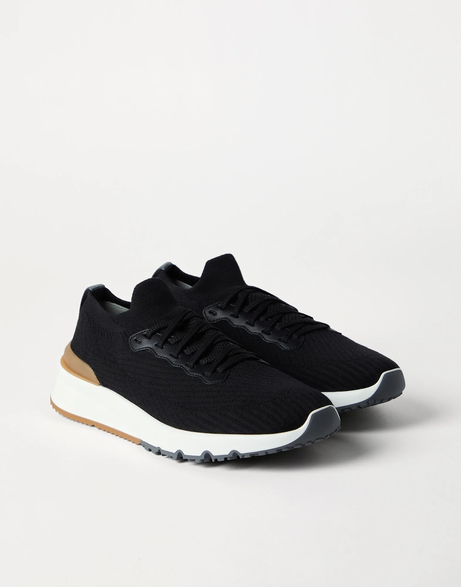 Cotton knit and semi-polished calfskin runners