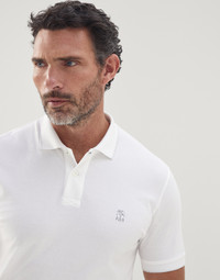 The excellence of Brunello Cucinelli materials enriches the Travelwear line, dedicated to moments of relaxation and free time. Small color details define the style of this cotton piqué polo shirt: the logo sewn on the chest is detailed in the same color as the stripe that enriches the edges of the collar and cuffs. This basic fit offers regular, straight lines. MATERIALS A classic menswear fabric, the lightweight pure cotton piqué is characterized by a traditional honeycomb weave. DETAILS Rib knit collar with button opening Rib knit cuffs and flat pressed bottom band Basic-fit 100% COTTON