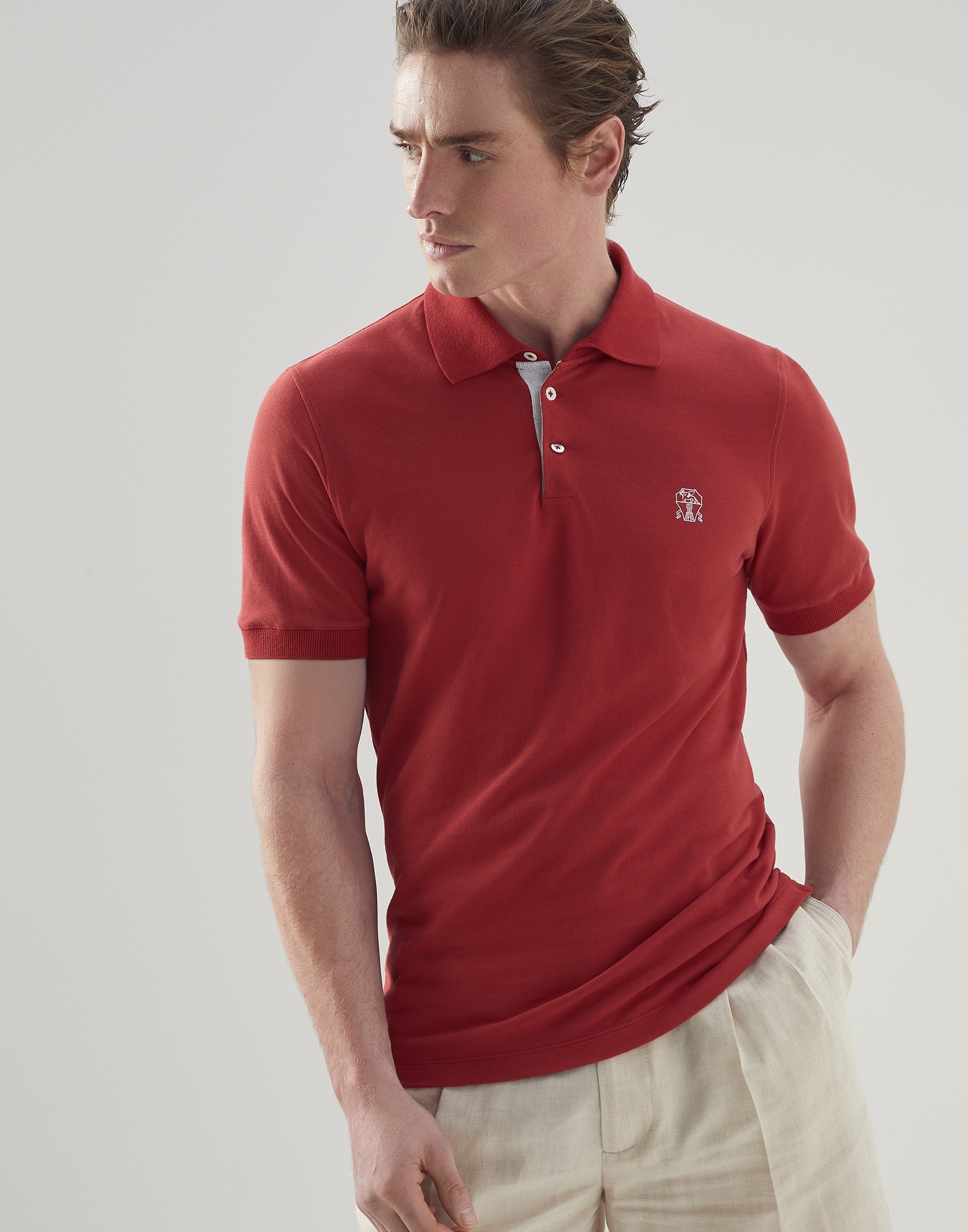 The sporty feel of cotton piqué defines the unmistakable style of this polo shirt. The rib knit collar and the contrast color embroidered logo complete the look of the garment. The close-fitting lines through the chest characterize the slim fit. MATERIALS A classic menswear fabric, the lightweight pure cotton piqué features the traditional honeycomb weave. DETAILS Rib knit collar with button opening Rib knit cuffs and flat pressed bottom band Slim fit 100% COTTON