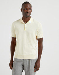 A timeless classic, this short sleeve polo is enriched with the excellence of Brunello Cucinelli yarns and workmanship. Ideal for milder weather, the extremely fine pure cotton yarn guarantees an ethereal lightness and perfectly complements the garment’s straight, comfortable proportions. MATERIALS Manufacturing of the pure cotton yarn enhances the qualities of the natural fibers and makes the garment lightweight and comfortable to wear. DETAILS Shirt-style collar with button opening Regular shoulder Rib knit cuffs and bottom band Plain stitch 100% COTTON
