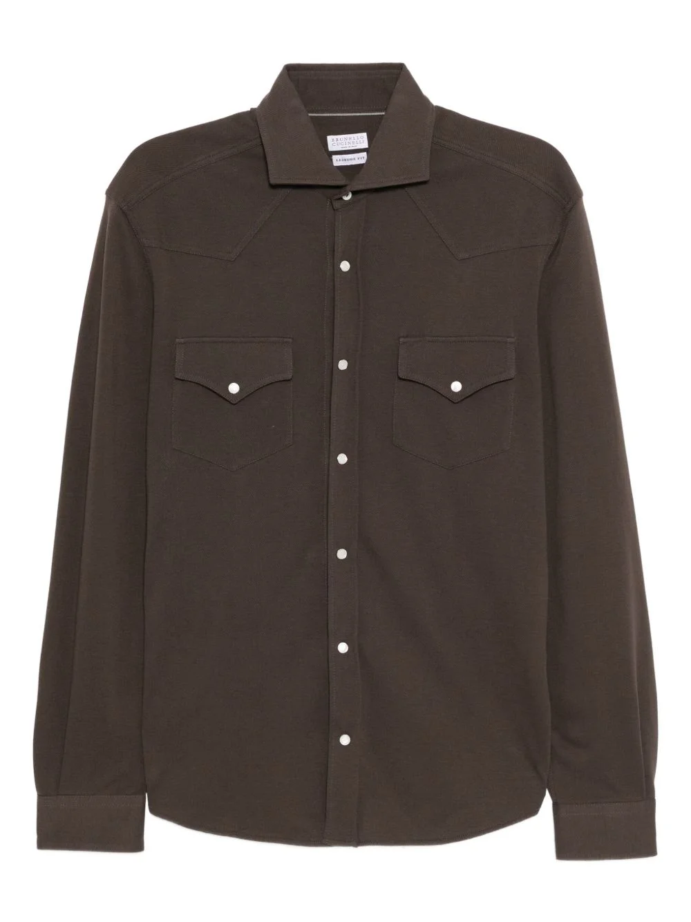 cotton shirt Highlights - Coffee brown - Front button fastening - Two chest flap pockets - Buttoned-cuff sleeves Made in Italy Composition Cotton 100% SIZE & FIT FittingInformation Designed for a regular fit, allowing for a comfortably loose fit throughout the body Made from a midweight non-stretch fabric, this piece offers minimal elasticity when worn Washing instructions Hand Wash