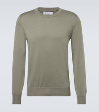 This Brunello Cucinelli sweater is a prime example of the maison's Italian craftsmanship and artisanal heritage. The piece is made from pure cotton with a relaxed silhouette and ribbed trims. Product Details - Material: 100% cotton - Care instructions: hand wash - Made in Italy - Designer color name: Kaki+Grigio Chiaro - Item color: green - Cuff: ribbed - Hem: ribbed - Item number: P01138463 Size & Fit - True to size - Straight fit - Stretchy fabric - Falls to the hip - Height of model is 192cm-75.5" and wears a size IT 50
