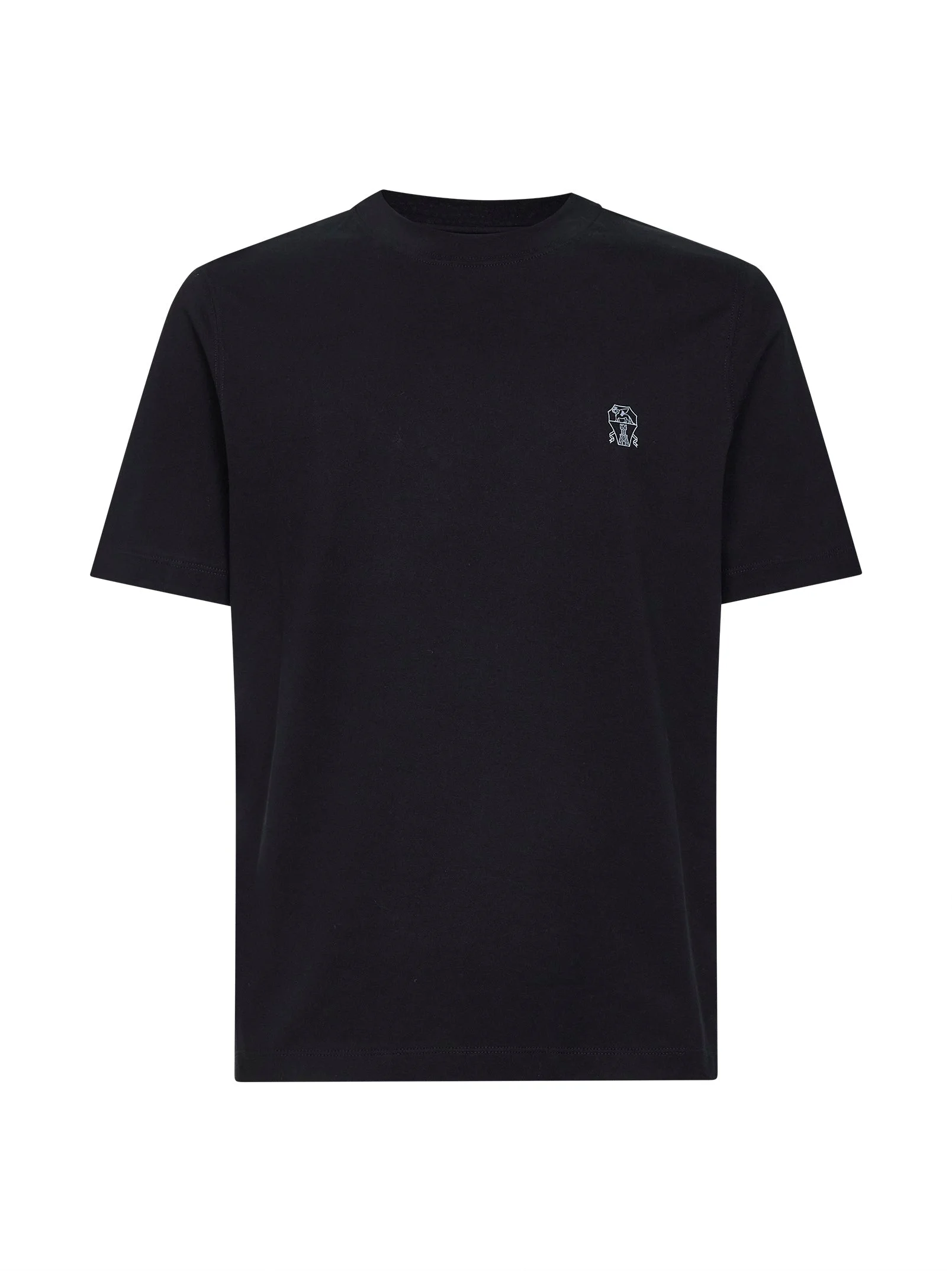 - Crewneck - Short sleeves - Contrasting solomeo crest printed at chest - Flat pressed hem cuffs and hem - Cotton jersey design - Regular fit - Black color - 100% cotton - Made in italy Natural (Veg): Cotton100 % Made in: ITALIA Season: P26 M0B138440-CSQ44