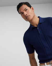 Cotton textured rib knit polo