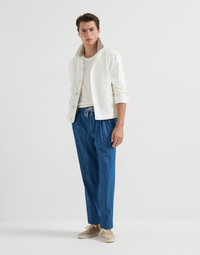 Lightweight denim trousers with drawstring and double pleats