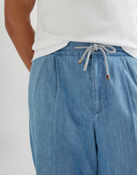 Lightweight denim trousers with drawstring and double pleats