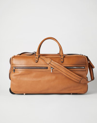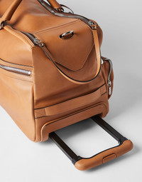 Designed for getaways outside of the city, this accessory combines the look of a duffle bag with the practicality and space of a trolley. The vachetta leather provides the bag with remarkable softness and lightness. The outside is equipped with numerous side pockets to keep your small essentials within reach, while the interior features different compartments to perfectly organize the space. The adjustable shoulder-strap and the rigid telescoping handle make transport easy. MATERIALS The vachetta leather showcases a natural finish with a very light grain. The surface is also characterized by a matte, smooth appearance. DETAILS Double zipper and magnet closure Adjustable and detachable padded shoulder strap Double handle Outside pockets with zipper Side pocket with zipper Water-resistant fabric lining Internal pocket with zip closure Internal compartment with snap Open internal compartment Removable name tag Swivel wheels Rigid, stowable handle All metal parts are Nickel-free The accessory measures approximately 65 cm (25.6") in length, 35 cm (13.8") in height, and 31 cm (12.2") in width REAL LEATHER