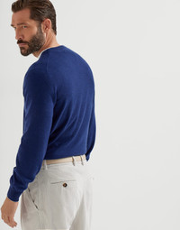A timeless classic, this pure cashmere sweater represents an icon of the Brunello Cucinelli collections. The natural cashmere fiber’s superior quality enhances its comfortable fit, which is both lightweight and cozy. The contrast color edges of the cuffs and the inside of the crew-neck complete the style of this garment with refined details. MATERIALS The noble cashmere fiber is characterized by an extreme fineness and also for its precious insulating qualities which guarantee warmth, providing coverage and lightness when worn. DETAILS Crew-neck in rib knit Rib knit cuffs and bottom band Plain stitch 100% CASHMERE