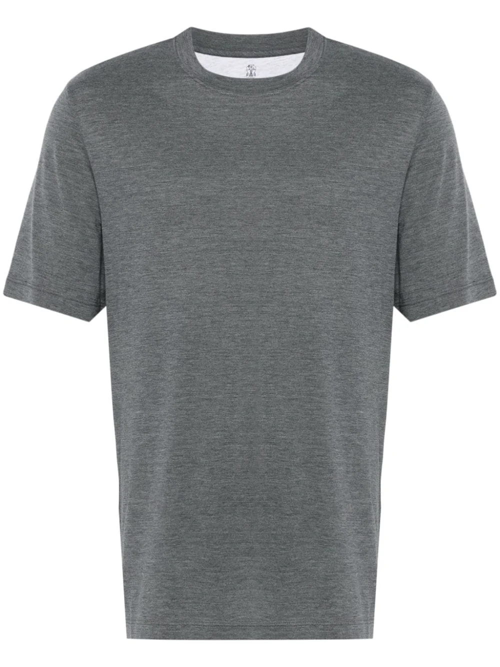 melange-effect T-shirt Highlights - Graphite grey - Cotton - Jersey texture - Melange effect - Crew neck - Short sleeves - Short side slits - Straight hem Made in Italy Composition Cotton 100% SIZE & FIT Model measurements Height 6 ft 2 in(1.89 m) Bust/Chest 39.76 in(101 cm) Hips 37.4 in(95 cm) Waist 29.92 in(76 cm) FittingInformation Designed for a regular fit allowing for a comfortably loose fit throughout the body Made from a midweight non-stretch fabric, this piece offers minimal elasticity when worn