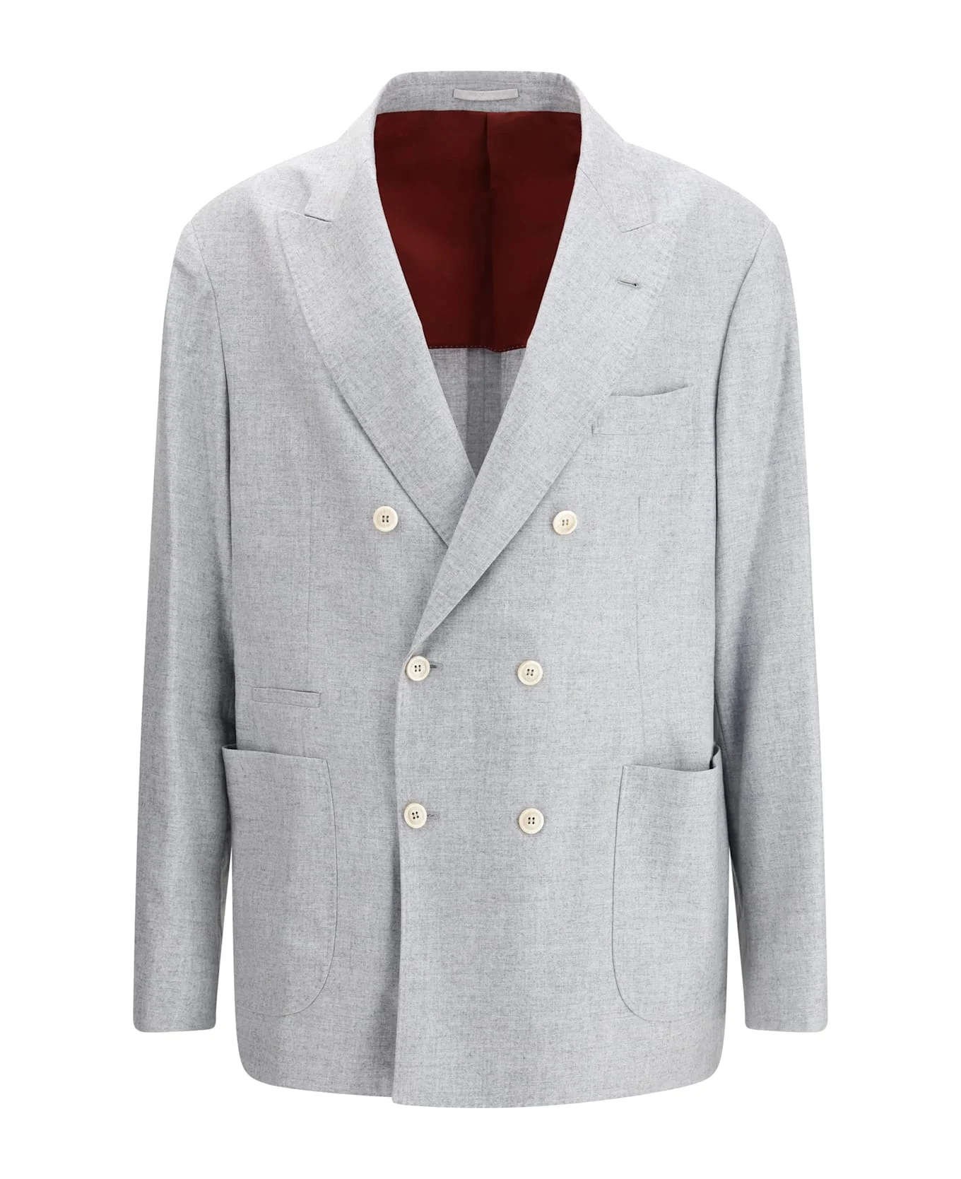 The deconstructed blazer by brunello cucinelli is crafted from wool and cashmere grisaille with boucle yarn, offering a lightweight texture and a subtle speckled effect. the one-and-a-half-breasted model with six-button closure features notch lapels, patch pockets, a ticket pocket, and a chest pocket. the signature solomeo shoulder provides structure without padding. finishing details include four-button cuffs, double back vents, and a half cupro lining. Composition: 95% % Wool, 5% % Kashmir/capra Hircus Made in: Italy Model number: MR4367BBDC031