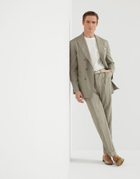 Refined Brunello Cucinelli yarns and workmanship enhance the elegant silhouette of this unconstructed one-and-a-half-breasted jacket with patch pockets and metal buttons. The classic feel of twill is updated with the blend of silk and linen, creating a matte fabric that accentuates the season’s colors with the slubbed texture of linen and a special delave finish. The “Solomeo Shoulder”, named after the hamlet where the company is located, characterizes the Brunello Cucinelli jacket with signature proportions. The tapered and pronounced cut of the shoulder enhances the male physique without the need for padding. MATERIALS The precious twill fabric created from the blend of natural silk and linen fibers is characterized by a semi-matte texture and the characteristic slubbed, slightly irregular appearance of linen. The special delave finish adds depth to the season's color. The jacket is completed with a cupro lining that perfects the comfort. DETAILS 6 metal button closure Peak lapel Patch pockets, ticket pocket and chest pocket Cuffs have four metal buttons and functional buttonholes Double back vent Two interior pockets with button closure and pen holder Cupro half lining Drop 7 62% SILK, 38% LINEN
