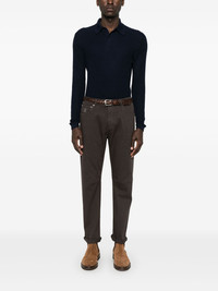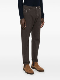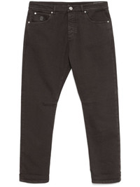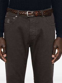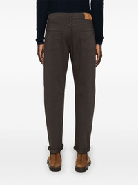 garment-dyed jeans Highlights - Coffee brown - Concealed fly and button fastening - Belt loops - Classic five pockets Made in Italy Composition Outer: Leather 100%, Cotton 99%, Elastane 1% Lining: Cotton 100% SIZE & FIT Model measurements Height 6 ft 1 in(1.86 m) Bust/Chest 35.82 in(91 cm) Hips 36.22 in(92 cm) Waist 28.74 in(73 cm) FittingInformation Designed for a tapered leg, these jeans allow a loose unrestricted fit over the leg with a closer fit towards the ankle Constructed from stretch denim, this piece offers a stretch fit with durability