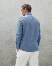 The elegant, casual feel of denim-like flannel defines the style of this button-down shirt with chest pocket. The easy fit is characterized by regular, rather straight lines and has a slightly shorter length than other fits, making it ideal to wear over your trousers for casual styling. MATERIALS The denim-like flannel is a warm, lightweight material that mimics the uneven coloring typical of the iconic fabric. DETAILS Placket closure with mother of pearl buttons Button-down collar Chest pocket Button cuffs Easy fit 100% COTTON