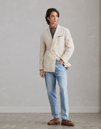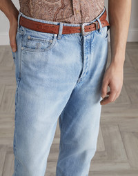 The distinct iconic fit defines these denim five-pocket trousers that are versatile for every season. The pure cotton fabric’s effortless comfort lightens the garment’s classic construction. The silhouette offers a slightly high-waisted cut that develops evenly down the leg. MATERIALS The pure cotton denim is characterized by a balanced weight that makes this garment comfortable to wear, particularly in warmer weather. DETAILS Metal button closure Front pockets with watch pocket Back patch pockets Iconic fit: the fit is characterized by slightly high-rise proportions with a regular design along the leg 100% COTTON