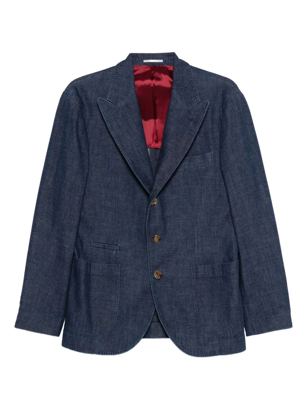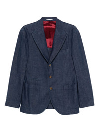 three-button patch-pocket blazer Highlights - Blue - Cotton denim - Three button fastening - Patch pockets - Notched lapels Made in Italy Composition Outer: Cotton 100% Lining: Cupro 100% SIZE & FIT Model measurements Height 6 ft 2 in(1.88 m) Bust/Chest 37.4 in(95 cm) Hips 38.58 in(98 cm) Waist 31.1 in(79 cm) Washing instructions Dry Clean Only