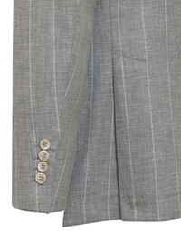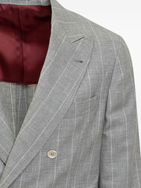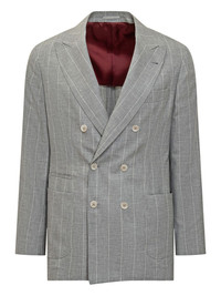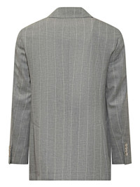 double breasted blazer Highlights - Light grey - Double-breasted button fastening - Wide notch lapels - Two side patch pockets - Pinstripe pattern Made in Italy Composition Virgin Wool 100%