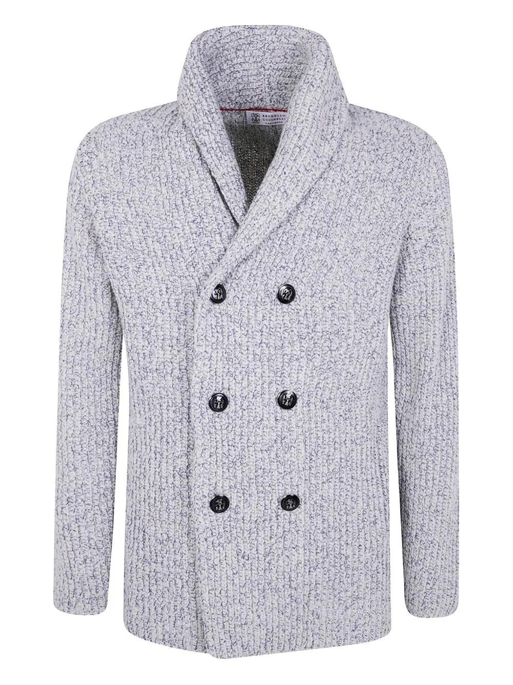 shawl-collar double-breasted cardigan Highlights - Light grey - Shawl collar - Double-breasted - Ribbed knit - Six buttons - Wool Made in Italy Composition Wool 100% Washing instructions Read Manufacturer Guidelines