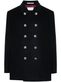 cashmere coat Highlights - Navy blue - Cashmere - Felted - Peak lapels - Double-breasted button fastening - Long sleeves - English rear vents - Straight hem - Two front jetted pockets - Partial lining Made in Italy Composition Lining: Cotton 100%, Cupro 100% Outer: Cashmere 100% SIZE & FIT Model measurements Height 6 ft 1 in(1.86 m) Bust/Chest 37.4 in(95 cm) Hips 36.22 in(92 cm) Waist 29.52 in(75 cm) FittingInformation Designed for a slim fit, offering a comfortable fit that sits just away from the body The vented hem offers movement at the rear Made from a midweight non-stretch fabric This piece fits true to size – take your usual size
