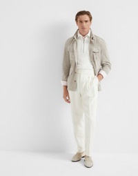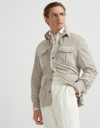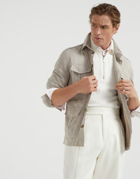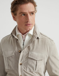 The excellence of Brunello Cucinelli materials updates this safari jacket in a modern way, combining refined leathers and retro details inspired by the world of travel and exploration. Lightweight and versatile, the double-faced suede showcases a fine, velvety texture on both sides that perfectly complements the unlined structure of the jacket, making it ideal for the spring. The signature patch pockets and shirt collar define the casual feel of the garment, which offers a regular fit. MATERIALS The double face leather features the precious characteristics of suede on both sides: lightweight, with a slight sheen and a dry, velvety hand. The unlined construction makes it ideal to wear in warm weather. DETAILS Horn button closure Shirt-style collar Upper patch pockets with flap and button Patch hand pockets with flap and button Button cuffs Unlined REAL LEATHER