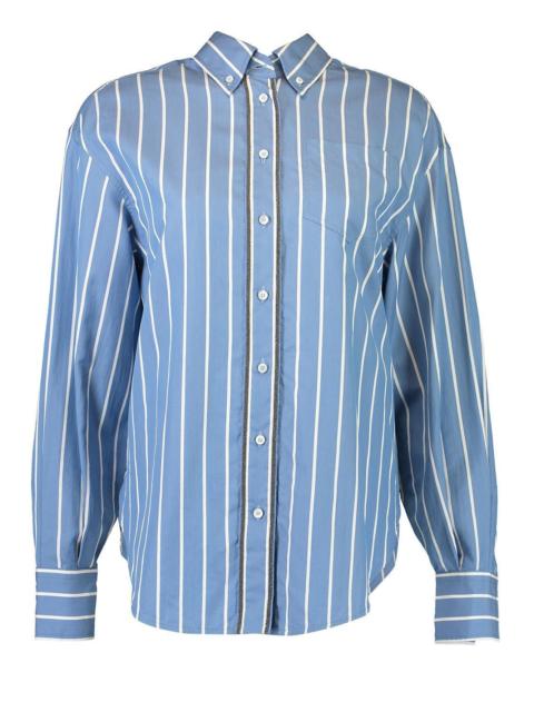DETAILS AND INSIGHT Brunello Cucinelli double monili trim wide stripe blouse in bordeaux/cream. Cotton Poplin Dry Clean Made in Italy Style MP752ND706-C029