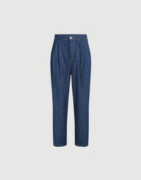 Lightness and versatility highlight the contemporary inspiration of these five-pocket trousers in lightweight cotton denim, a particularly comfortable material to wear. The essential silhouette is completed by the tailored-inspired double pleat detail. The style offers a slightly high-waisted cut, which then develops regularly down the leg. MATERIALS The pure cotton denim is characterized by a balanced weight that makes this garment comfortable to wear, particularly in warmer weather. DETAILS Metal button closure Slanted front pockets with watch pocket Double pleat Back patch pockets Plain hem Iconic fit: the fit is characterized by slightly high-rise proportions with a regular design along the leg 100% COTTON