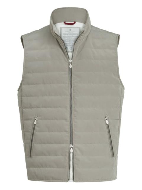 quilted high-collar gilet Highlights - Blue - Horizontal quilting - High neck - Front zip-fastening - Side zip-pockets Made in Italy Composition Outer: Polyester 70%, Polyamide 30% Lining: Nylon 100%, RDS Down 100% Washing instructions Read Manufacturer Guidelines