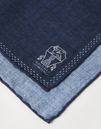The pure silk fabric’s melange effect is enriched with a heraldic logo that stands out in the corner of this pocket square. MATERIALS An elegant and refined accessory, the new pocket square completes the style of the blazers and suits in the collection with a modern touch. DETAILS Pocket square measures approx. 35 cm (13,78") x 35 cm (13,78") 100% SILK