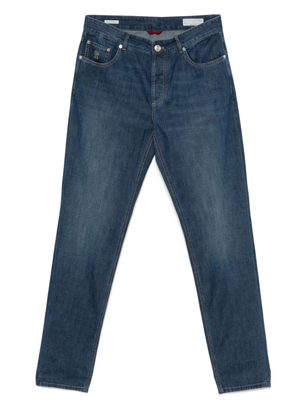 embroidered-logo jeans Highlights - Indigo blue - Button fly fastening - Classic five pockets - Belt loops - Logo patch to the rear Made in Italy Composition Lining: Cotton 100% Outer: Cotton 100%, Calf Leather 100% SIZE & FIT Model measurements Height 6 ft 0 in(1.84 m) Bust/Chest 37.79 in(96 cm) Hips 37 in(94 cm) Waist 31.49 in(80 cm) FittingInformation Designed for a slim fit, these jeans offer a comfortable fit that sits just away from the leg Sturdy and hard-wearing, this denim piece offers no stretch Washing instructions Machine Wash