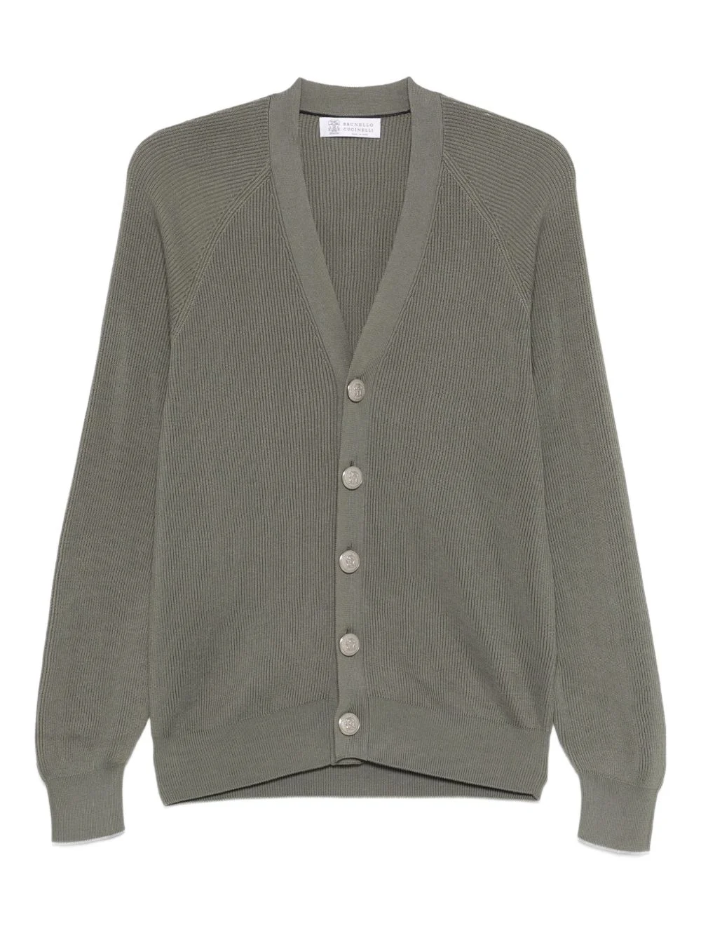ribbed button cardigan Highlights - Khaki - Ribbed knit - V-neck - Button fastening - Long sleeves - Fitted cuffs Made in Italy Composition Cotton 100% Washing instructions Hand Wash