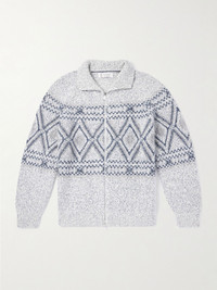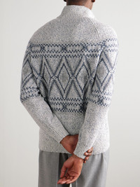 Fair Isle Wool, Silk and Cashmere-Blend Zip-Up Cardigan Gray