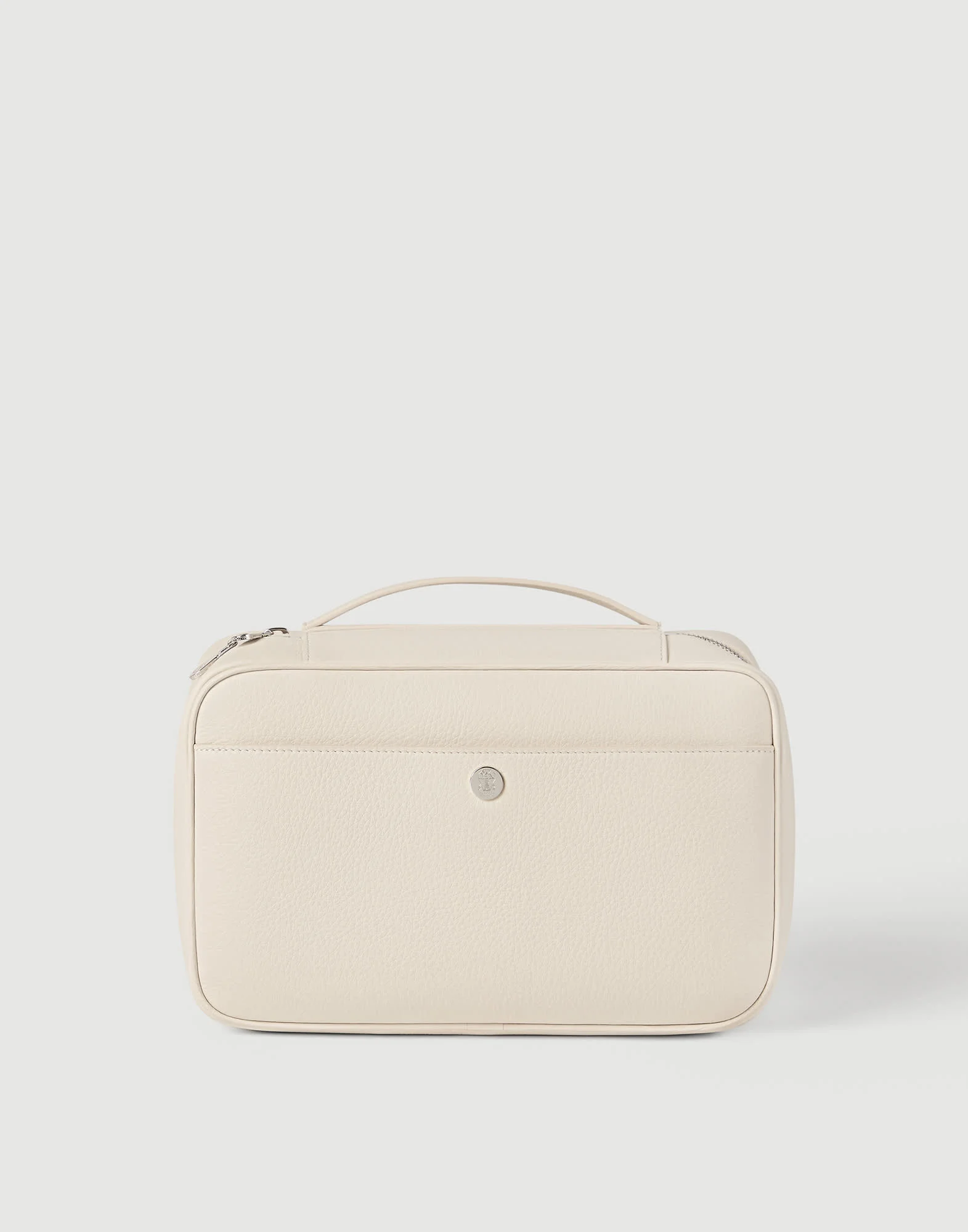 This new travel beauty case combines a minimal, functional design with the careful selection of refined materials and workmanship. The fine grain calfskin gives the accessory a particularly soft texture with intense, polished colors. The single handle, outside pocket and zipper closure make daily use easy. MATERIALS The refined calfskin is the result of a careful selection of raw materials and a constant pursuit of quality. The characteristic fine grain gives the texture a distinctive softness, making it ideal for crafting accessories with an elegant look. DETAILS Two-way zip closure Handle Outside pocket with snap Outside zipper pocket Water-resistant fabric lining 2 internal compartments with zippers Internal compartment with snap All metal parts are Nickel-free Accessory is approx. 28 cm (11.02") long, 15 cm (5.91") high and 9 cm (3.54") wide 100% REAL LEATHER