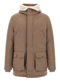 quilted shearling-detail coat Highlights - Brown - Quilted design - Shearling-lined hood - Multiple pockets - Drawstring hem Made in Italy Composition Wool 100%
